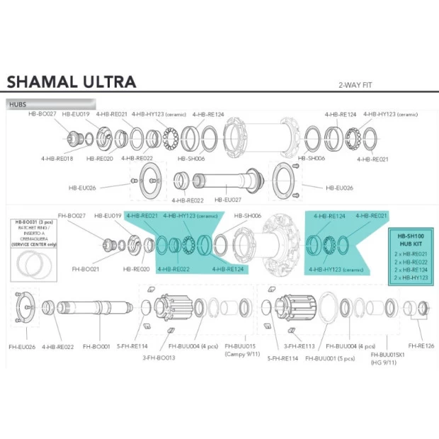 (2 x HB-RE021, 2 x HB-RE022, 2 x HB-HY123, 2 x HB-RE124)