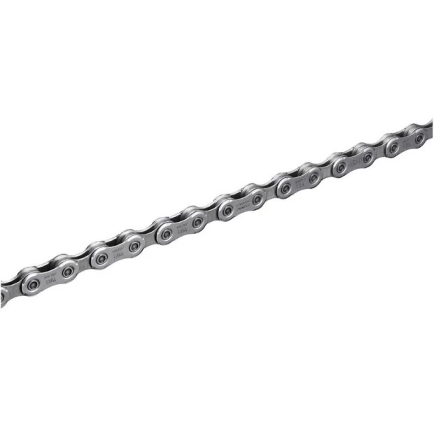 La chaîne Shimano SLX CN-M7100 offre une meilleure rétention sur les dents des plateaux et pignons grâce à une partie étendue de la plaque interne. De plus, elle est équipée d’un assemblage de maillons rapides et bénéficie d’un traitement SIL-TEC pour une plus grande longévité en tout-terrain.