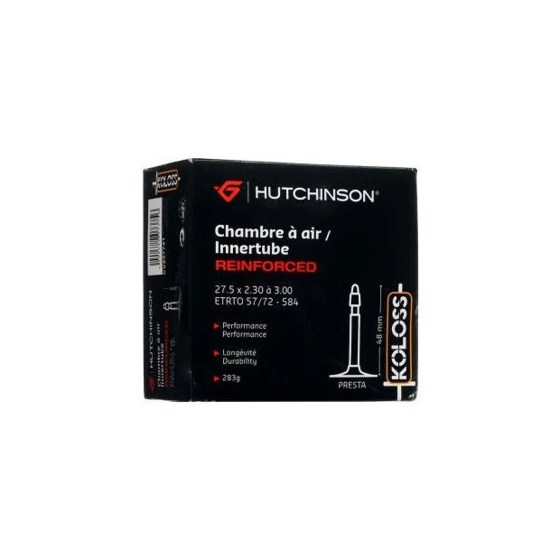La chambre à air Hutchinson Renforcée Koloss est un modèle renforcé d’une épaisseur 1.2mm pour une meilleure résistance à la crevaison de vos pneus VTT. Elle est 33% plus résistante qu’une chambre à air Standard. La chambre à air Renforcée Koloss est à ranger dans la sacoche de selle, le maillot ou le sac à dos avec votre matériel de réparation.
